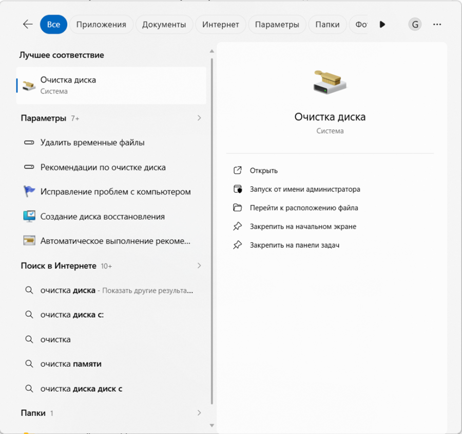 - Нажмите Win + S, введите «Очистка диска», откройте.