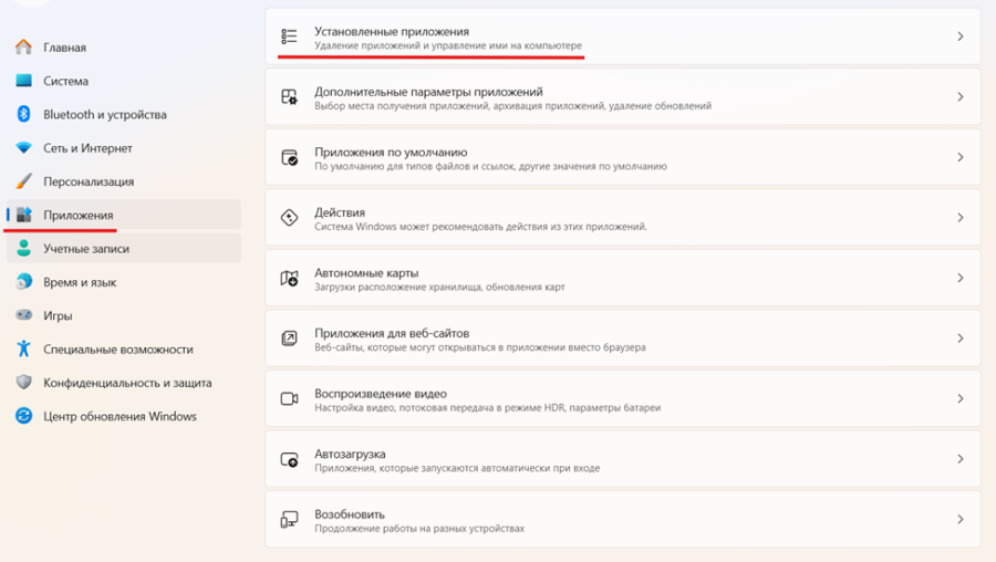 1. Откройте Установка и удаление программ или Настройки → Приложения.