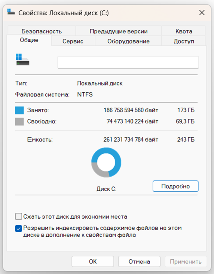 - Нажмите «Очистка диска» прямо в этом окне - Windows сама покажет, сколько можно освободить.